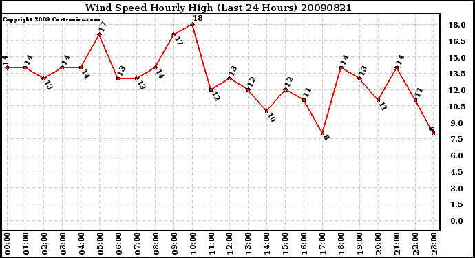 20090821 Wind Speed Hourly High (Last 24 Hours)