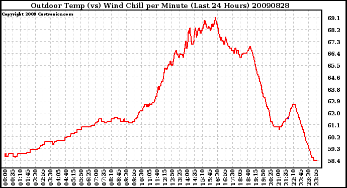 Milwaukee Weather -- 20090828 Outdoor Temp (vs) Wind Chill per Minute (Last 24 Hours) -- From curtronics.com by Curt Blank