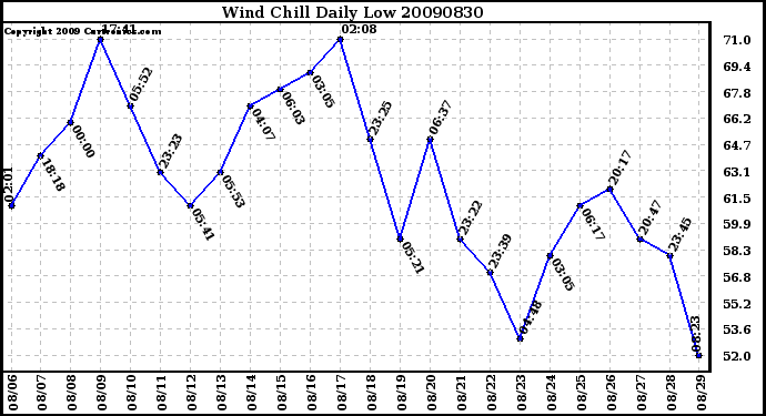 Milwaukee Weather -- 20090830 Wind Chill Daily Low -- From curtronics.com by Curt Blank