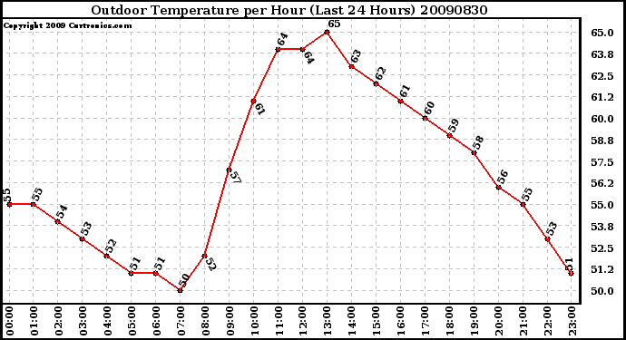 Milwaukee Weather -- 20090830 Outdoor Temperature per Hour (Last 24 Hours) -- From curtronics.com by Curt Blank