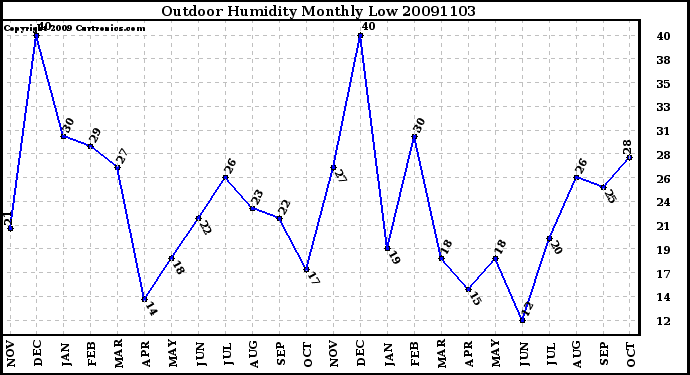Milwaukee Weather -- 20091103 Outdoor Humidity Monthly Low -- From curtronics.com by Curt Blank