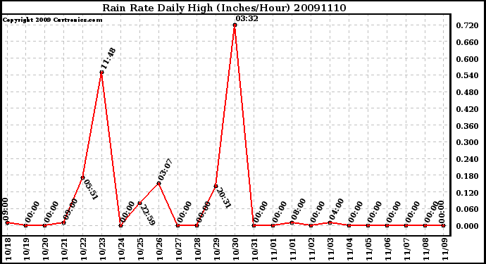 Milwaukee Weather -- 20091110 Rain Rate Daily High (Inches/Hour) -- From curtronics.com by Curt Blank