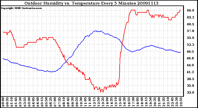 Milwaukee Weather -- 20091113 Outdoor Humidity vs. Temperature Every 5 Minutes -- From curtronics.com by Curt Blank