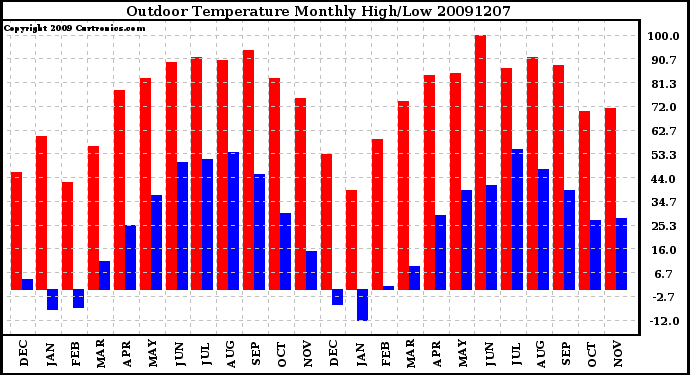 20091207 Outdoor Temperature Monthly High/Low
