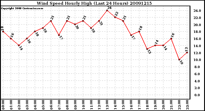 20091215 Wind Speed Hourly High (Last 24 Hours)