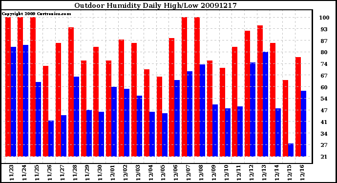 Milwaukee Weather -- 20091217 Outdoor Humidity Daily High/Low -- From curtronics.com by Curt Blank