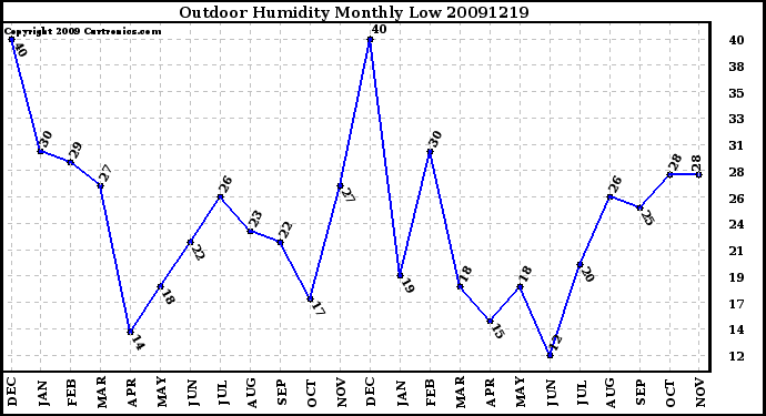 Milwaukee Weather -- 20091219 Outdoor Humidity Monthly Low -- From curtronics.com by Curt Blank