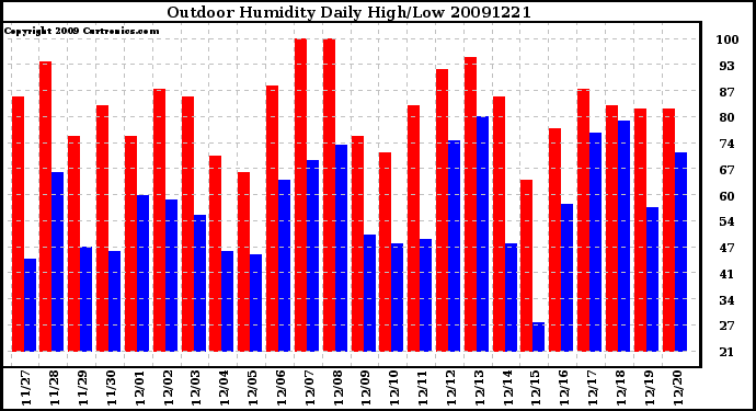 Milwaukee Weather -- 20091221 Outdoor Humidity Daily High/Low -- From curtronics.com by Curt Blank