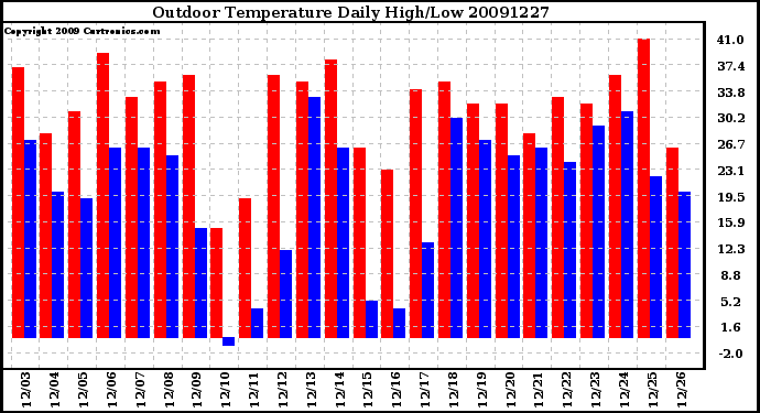 Milwaukee Weather -- 20091227 Outdoor Temperature Daily High/Low -- From curtronics.com by Curt Blank