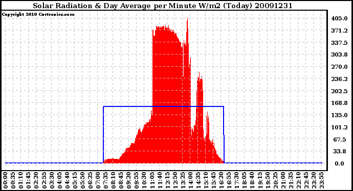 Milwaukee Weather -- 20091231 Solar Radiation & Day Average per Minute W/m2 (Today) -- From curtronics.com by Curt Blank