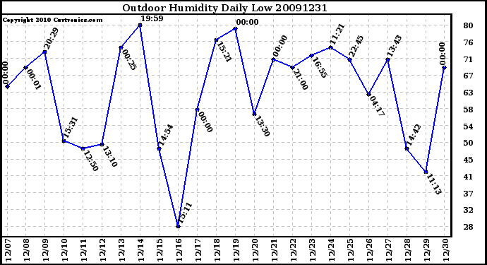 Milwaukee Weather -- 20091231 Outdoor Humidity Daily Low -- From curtronics.com by Curt Blank