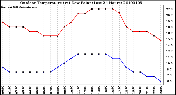 20100105 Outdoor Temperature (vs) Dew Point (Last 24 Hours)