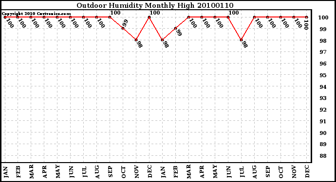 Milwaukee Weather -- 20100110 Outdoor Humidity Monthly High -- From curtronics.com by Curt Blank