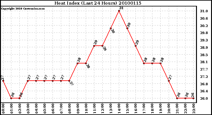Milwaukee Weather -- 20100115 Heat Index (Last 24 Hours) -- From curtronics.com by Curt Blank