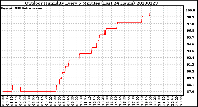 20100123 Outdoor Humidity Every 5 Minutes (Last 24 Hours)
