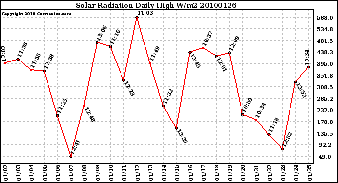 Milwaukee Weather -- 20100126 Solar Radiation Daily High W/m2 -- From curtronics.com by Curt Blank