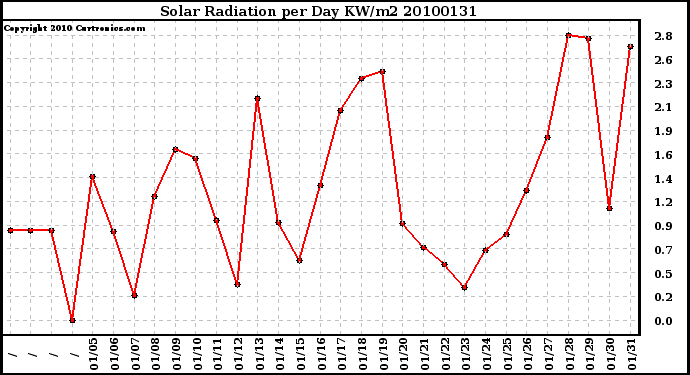 Milwaukee Weather -- 20100131 Solar Radiation per Day KW/m2 -- From curtronics.com by Curt Blank