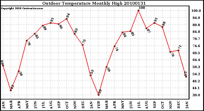 Milwaukee Weather -- 20100131 Outdoor Temperature Monthly High -- From curtronics.com by Curt Blank