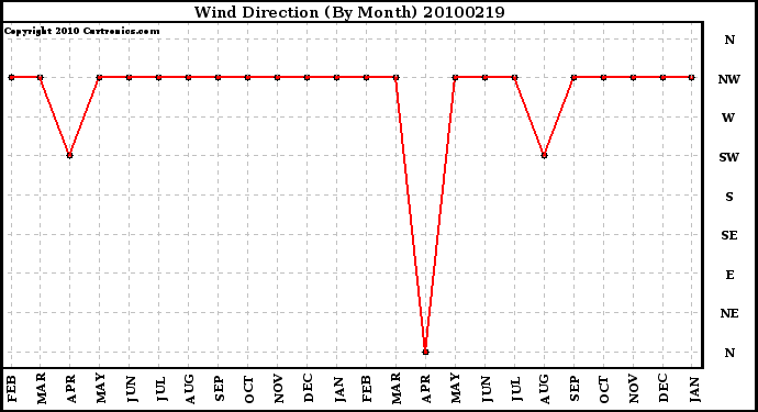 Milwaukee Weather -- 20100219 Wind Direction (By Month) -- From curtronics.com by Curt Blank