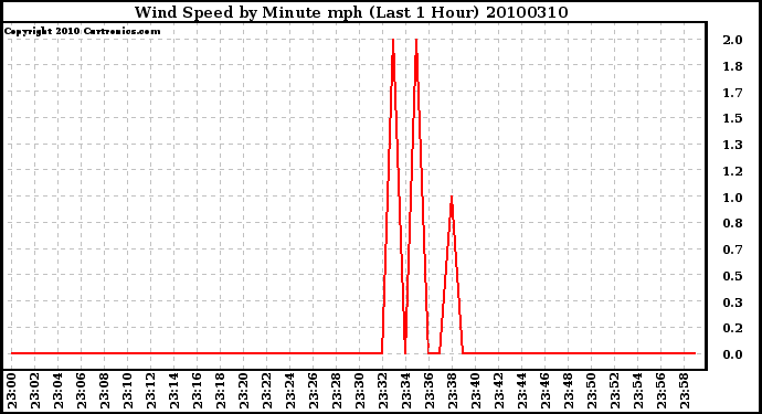 20100310 Wind Speed by Minute mph (Last 1 Hour)