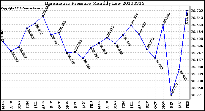 20100315 Barometric Pressure Monthly Low