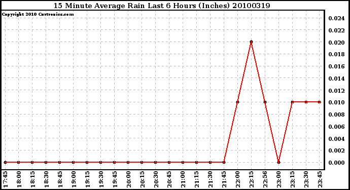 Milwaukee Weather -- 20100319 15 Minute Average Rain Last 6 Hours (Inches) -- From curtronics.com by Curt Blank