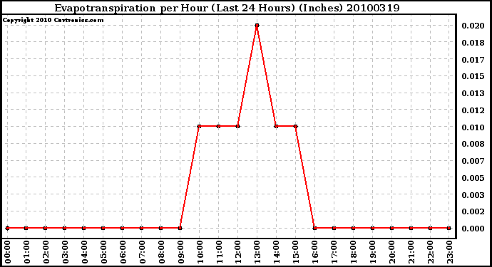 Milwaukee Weather -- 20100319 Evapotranspiration per Hour (Last 24 Hours) (Inches) -- From curtronics.com by Curt Blank