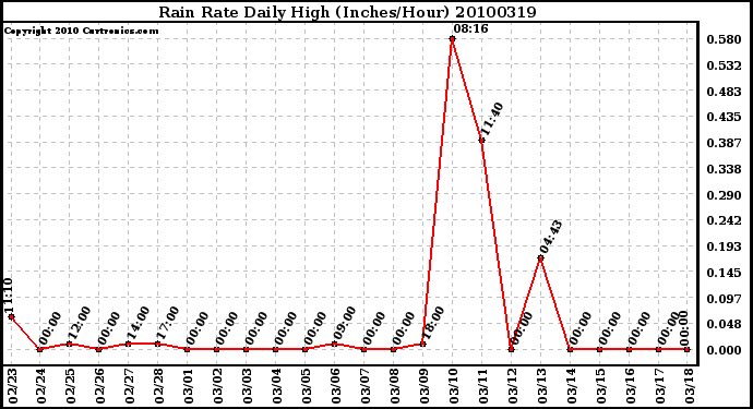 Milwaukee Weather -- 20100319 Rain Rate Daily High (Inches/Hour) -- From curtronics.com by Curt Blank