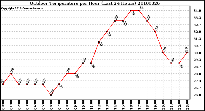 Milwaukee Weather -- 20100326 Outdoor Temperature per Hour (Last 24 Hours) -- From curtronics.com by Curt Blank