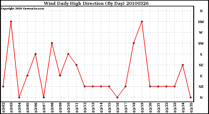 Milwaukee Weather -- 20100326 Wind Daily High Direction (By Day) -- From curtronics.com by Curt Blank
