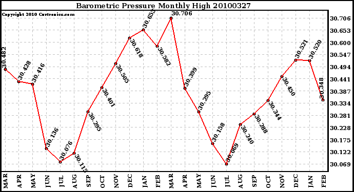 Milwaukee Weather -- 20100327 Barometric Pressure Monthly High -- From curtronics.com by Curt Blank