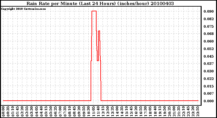 Milwaukee Weather -- 20100403 Rain Rate per Minute (Last 24 Hours) (inches/hour) -- From curtronics.com by Curt Blank