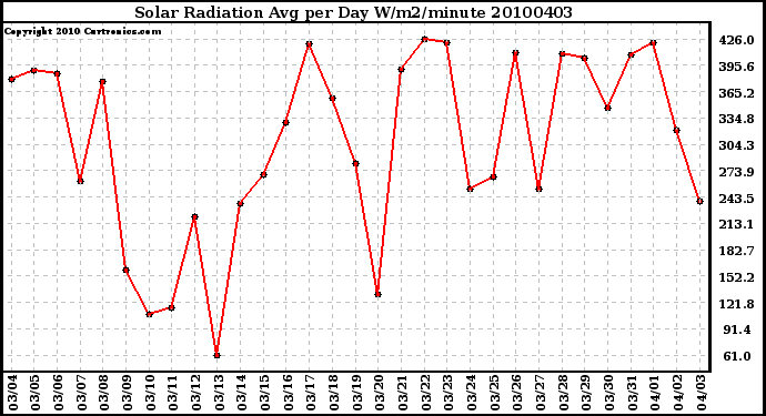20100403 Solar Radiation Avg per Day W/m2/minute