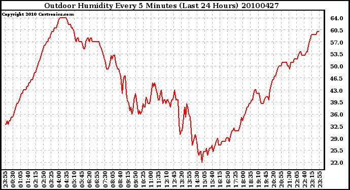 Milwaukee Weather -- 20100427 Outdoor Humidity Every 5 Minutes (Last 24 Hours) -- From curtronics.com by Curt Blank
