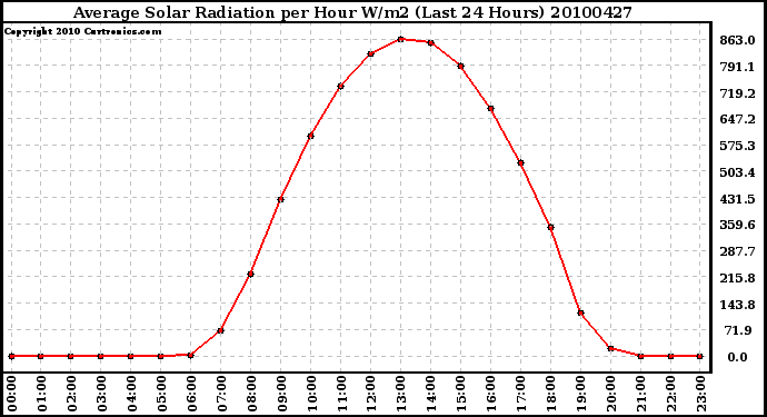 Milwaukee Weather -- 20100427 Average Solar Radiation per Hour W/m2 (Last 24 Hours) -- From curtronics.com by Curt Blank