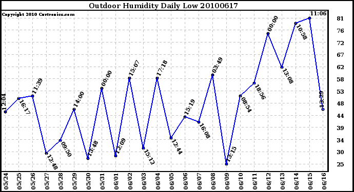 Milwaukee Weather -- 20100617 Outdoor Humidity Daily Low -- From curtronics.com by Curt Blank