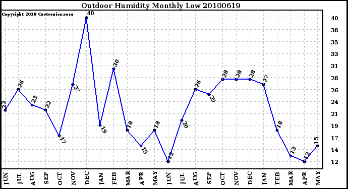 Milwaukee Weather -- 20100619 Outdoor Humidity Monthly Low -- From curtronics.com by Curt Blank