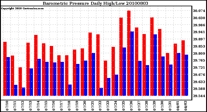 Milwaukee Weather -- 20100803 Barometric Pressure Daily High/Low -- From curtronics.com by Curt Blank