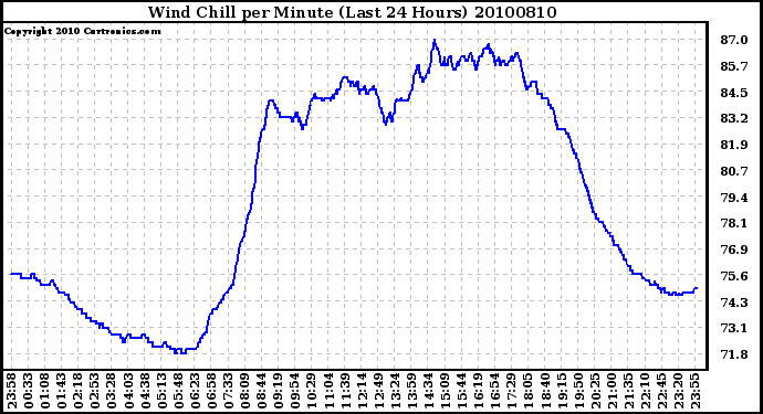 Milwaukee Weather -- 20100810 Wind Chill per Minute (Last 24 Hours) -- From curtronics.com by Curt Blank