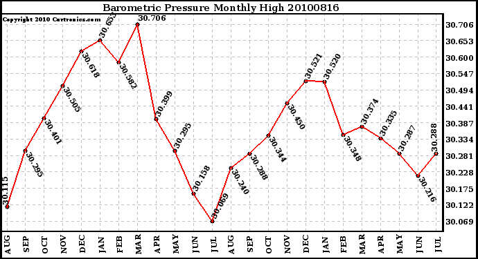 Milwaukee Weather -- 20100816 Barometric Pressure Monthly High -- From curtronics.com by Curt Blank