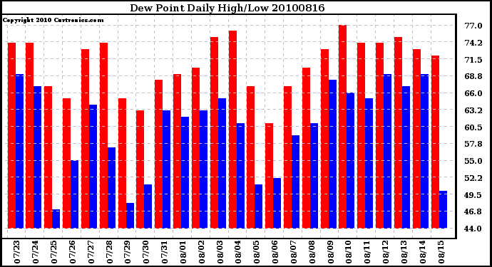 Milwaukee Weather -- 20100816 Dew Point Daily High/Low -- From curtronics.com by Curt Blank