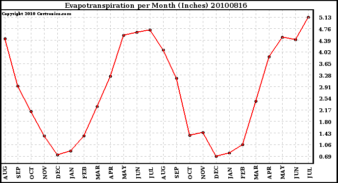20100816 Evapotranspiration per Month (Inches)