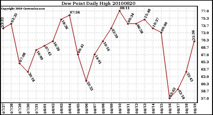 Milwaukee Weather -- 20100820 Dew Point Daily High -- From curtronics.com by Curt Blank