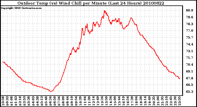 Milwaukee Weather -- 20100822 Outdoor Temp (vs) Wind Chill per Minute (Last 24 Hours) -- From curtronics.com by Curt Blank