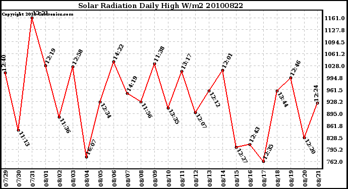 Milwaukee Weather -- 20100822 Solar Radiation Daily High W/m2 -- From curtronics.com by Curt Blank