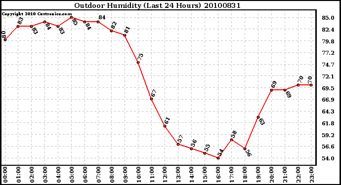 Milwaukee Weather -- 20100831 Outdoor Humidity (Last 24 Hours) -- From curtronics.com by Curt Blank