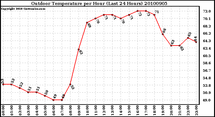 Milwaukee Weather -- 20100905 Outdoor Temperature per Hour (Last 24 Hours) -- From curtronics.com by Curt Blank