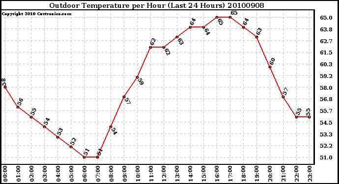 Milwaukee Weather -- 20100908 Outdoor Temperature per Hour (Last 24 Hours) -- From curtronics.com by Curt Blank