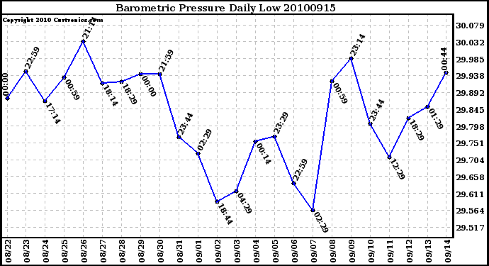 Milwaukee Weather -- 20100915 Barometric Pressure Daily Low -- From curtronics.com by Curt Blank