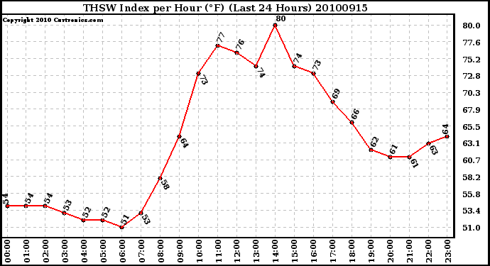 Milwaukee Weather -- 20100915 THSW Index per Hour (°F) (Last 24 Hours) -- From curtronics.com by Curt Blank